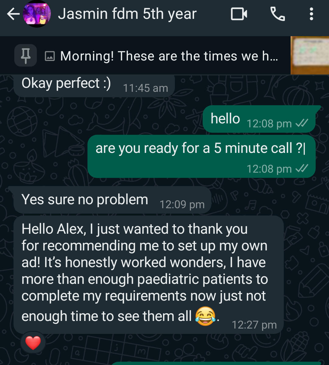 - How to set up a student-friendly campaign from scratch- The exact targeting and ad structure that produces results- How to write clear ad text that attracts the right patients- Mistakes to avoid so you don’t burn money- How to manage and optimize your campaign day-to-dayThis is the fastest way to get your own working campaign running — without wasting weeks trying to figure it out alone. You walk away with everything you need to run your own ads successfully.